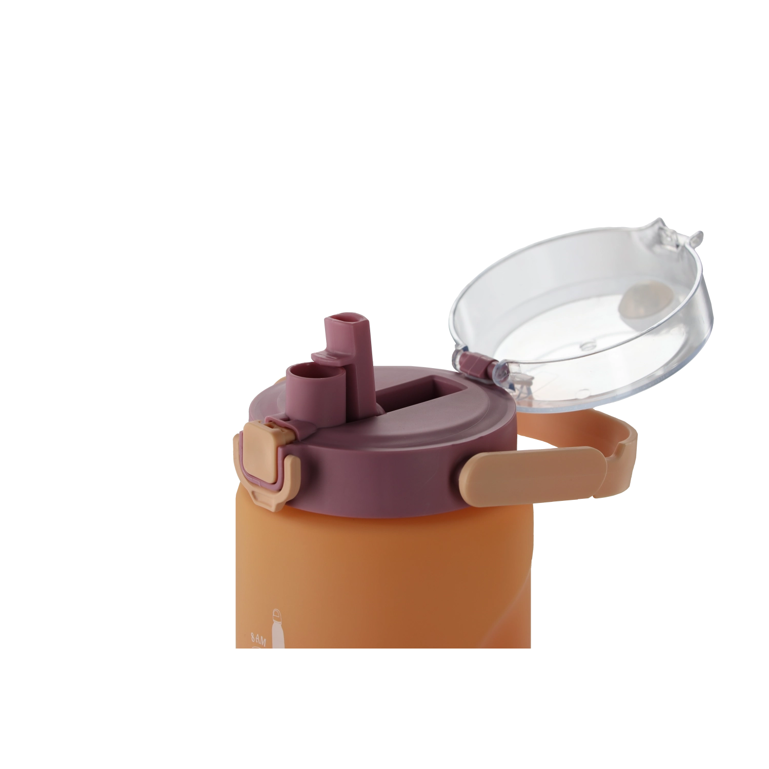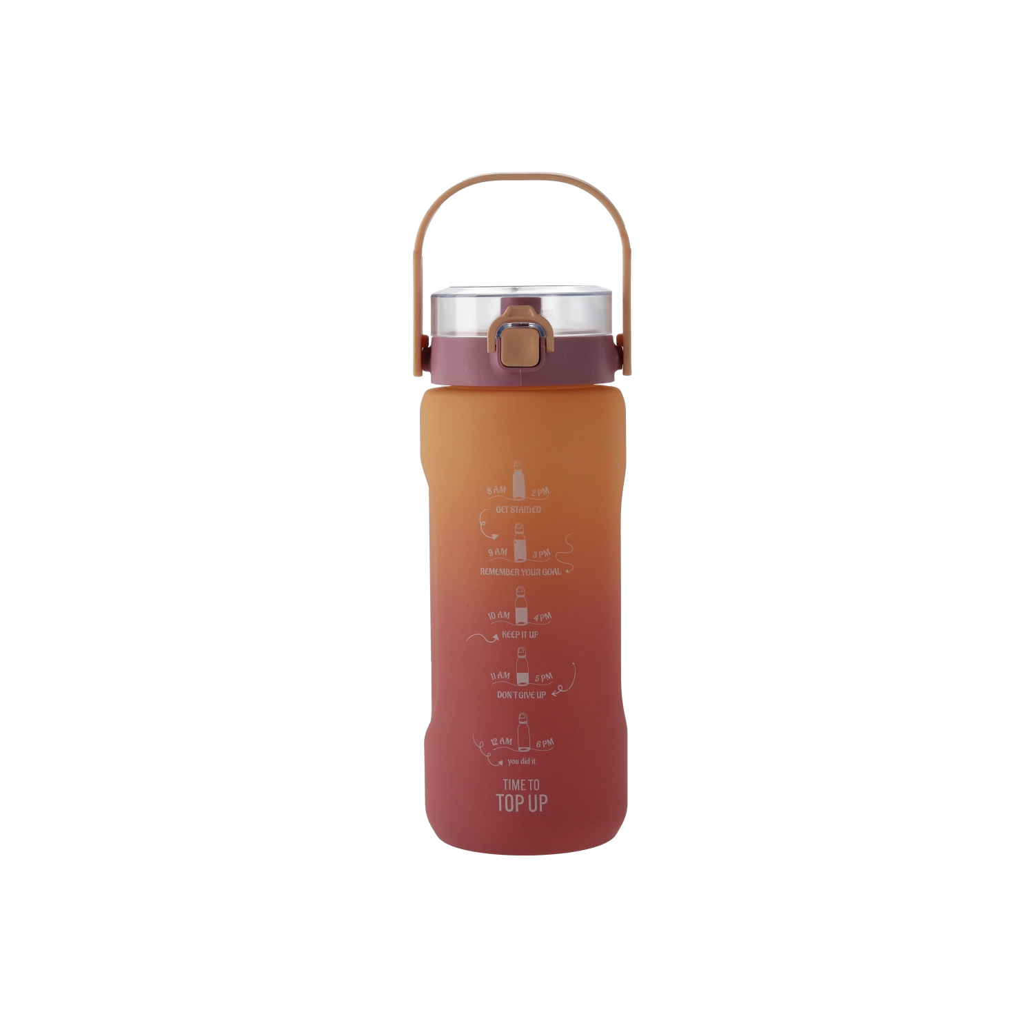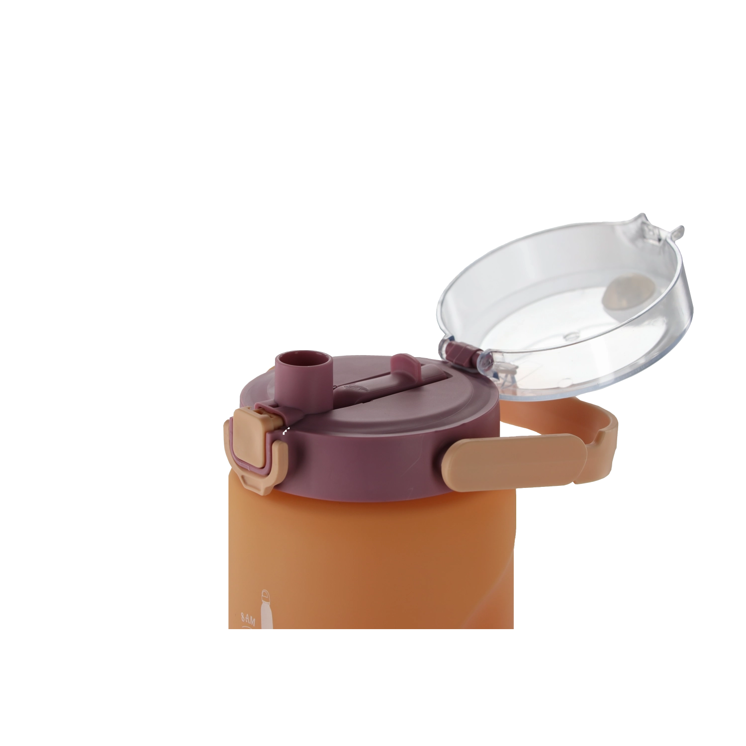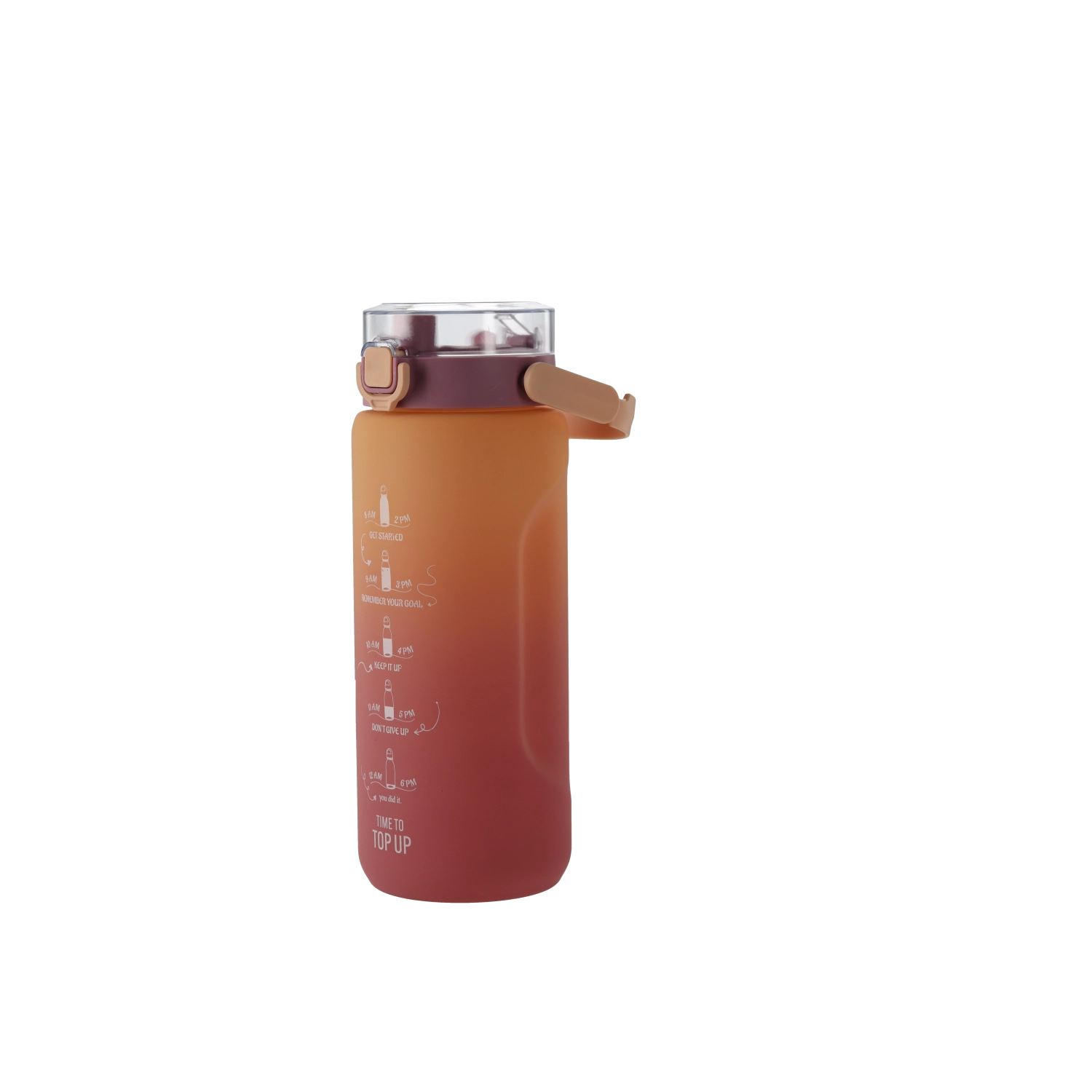 Le couvercle avec embout et fermeture de sécurité protège contre les ouvertures involontaires et les fuites. L’anse/poignée latérale facilite le transport, ce qui rend la bouteille parfaite pour le travail, la salle de sport et les sorties. Grâce aux graduations, vous gardez votre hydratation sous contrôle tout au long de la journée.