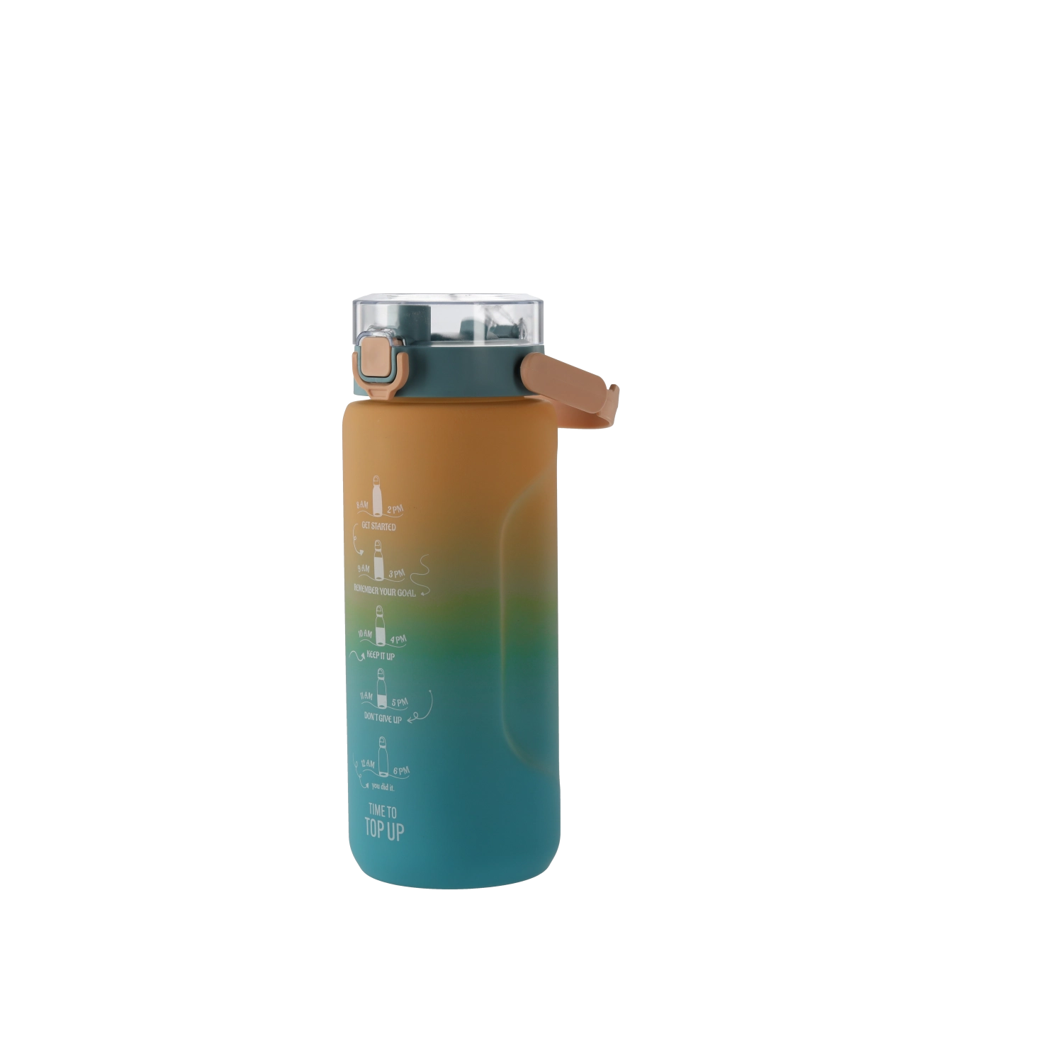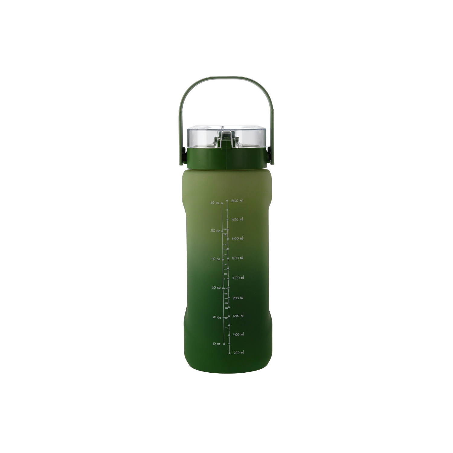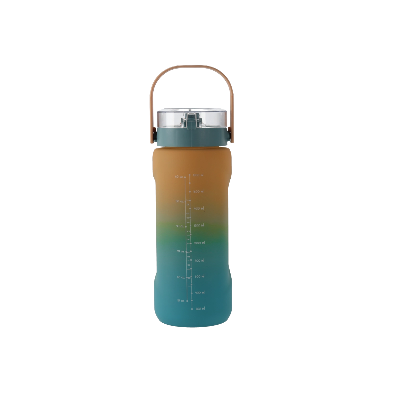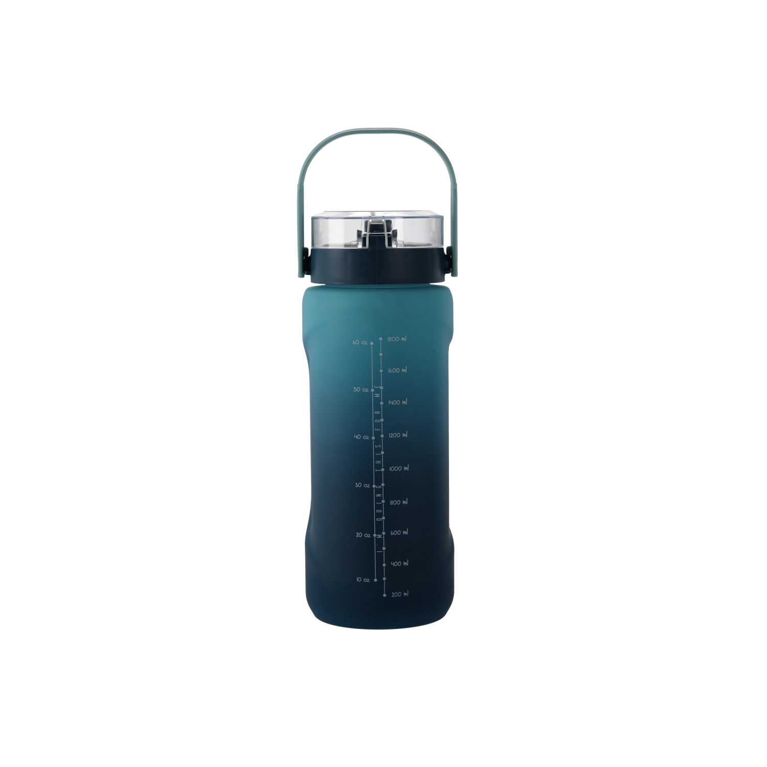 Cette bouteille grand volume (2000 ml) allie look moderne et détails pratiques pour une utilisation quotidienne aisée. Le dégradé bleu foncé et bleu clair confère un style attractif, tandis que le matériau PC robuste est léger, durable et adapté aux transports fréquents.
