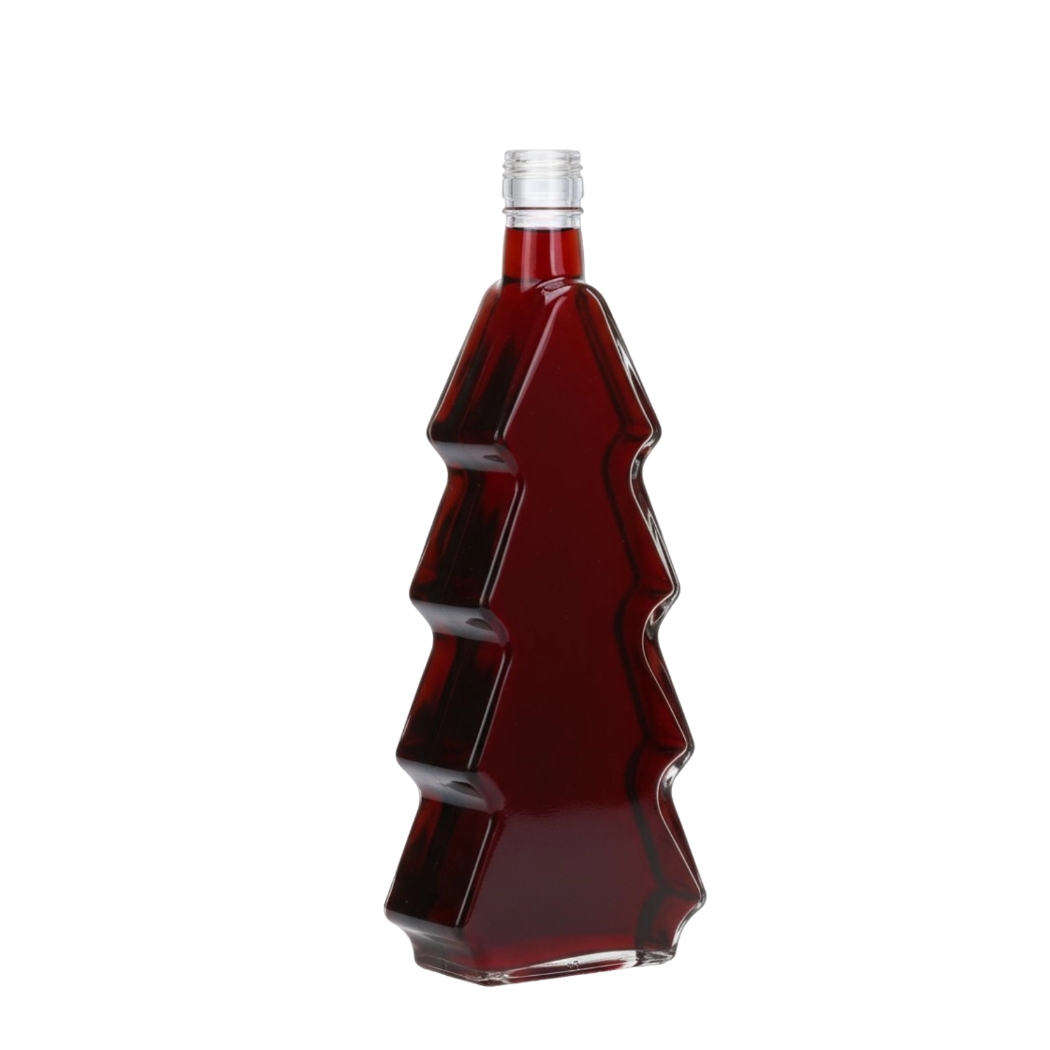 Élégante bouteille en verre de 500 ml en forme de sapin de Noël, idéale pour les liqueurs maison, sirops, jus et huiles aromatisées. Le verre transparent met en valeur les couleurs de la boisson, tandis que le bouchon à vis en métal doré assure une étanchéité fiable. Son design élégant en fait à la fois un accessoire pratique et décoratif et un superbe cadeau de Noël.