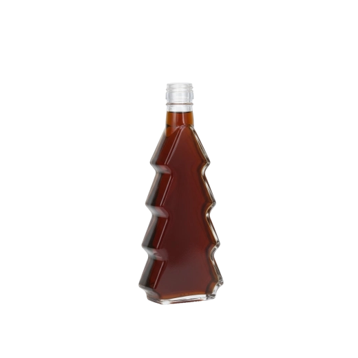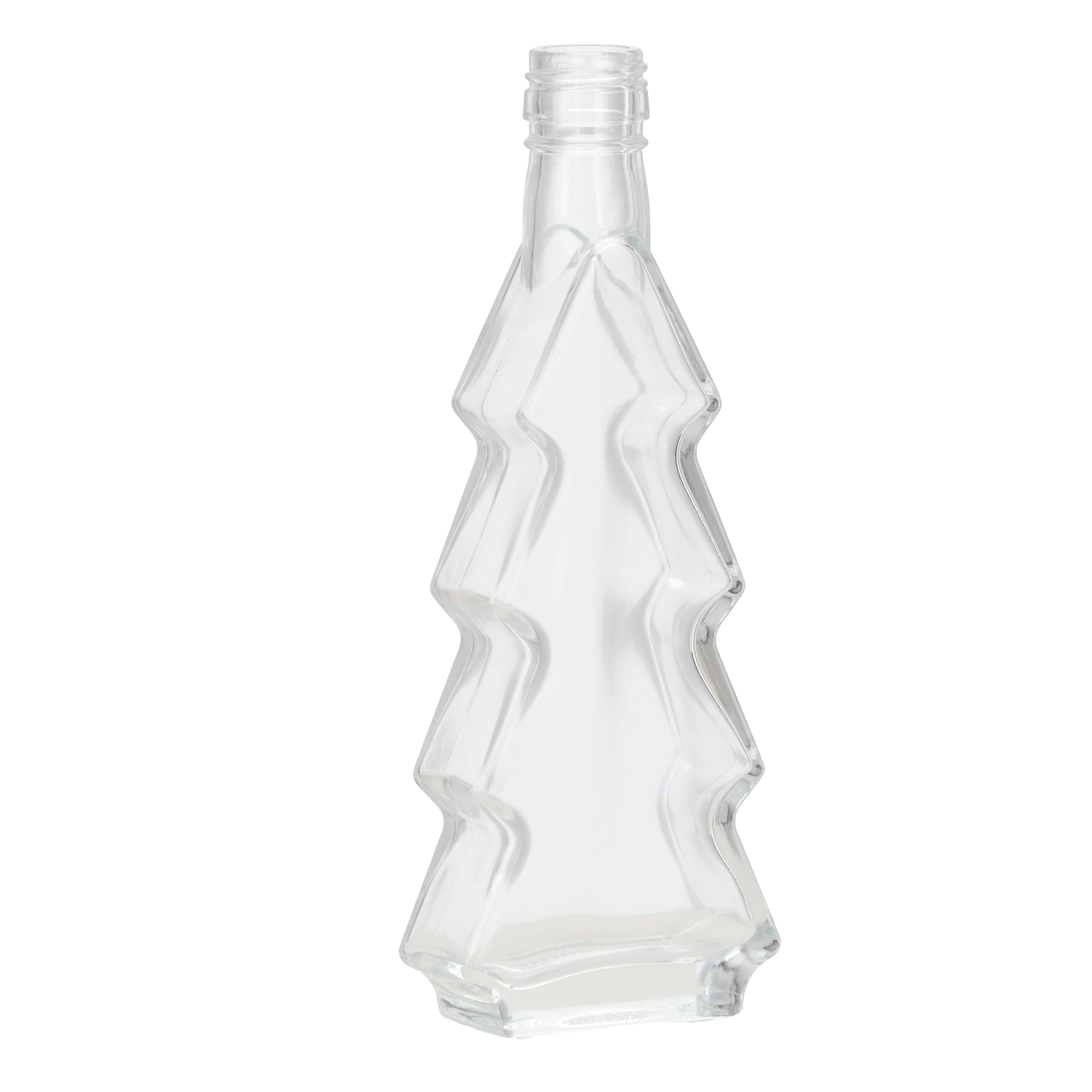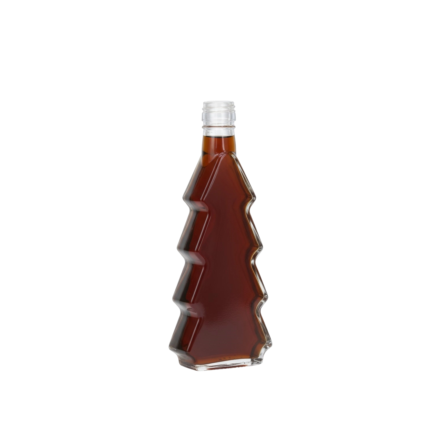 Bouteille en verre élégante de 200 ml en forme de sapin de Noël, idéale pour liqueurs maison, sirops, huiles et concentrés de fruits. Grâce à son verre transparent et résistant, le contenu est parfaitement mis en valeur et le bouchon à vis standard assure une étanchéité fiable. Son design attrayant est parfait comme décoration de table de fête ou cadeau original.