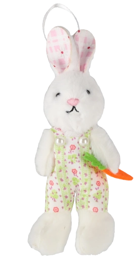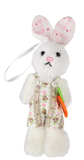 Créez une décoration printanière joyeuse chez vous avec ces petits lapins suspendus décoratifs tenant une carotte. Chaque pièce est soigneusement réalisée, avec de fins détails et des tenues colorées qui égayent branches, fenêtres et couronnes de Pâques. Grâce à leurs dimensions compactes de 6 × 11 cm, ils s’intègrent à tous les intérieurs.