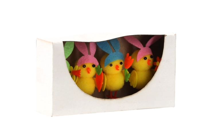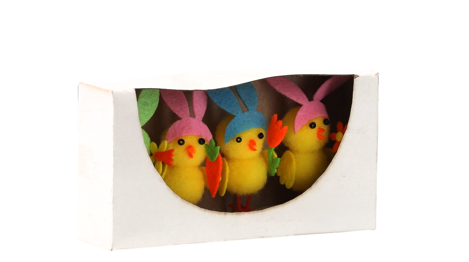 Créez une ambiance printanière magique chez vous avec ce lot de quatre poussins jaunes aux oreilles de lapin. Ces décorations symbolisent l’arrivée du printemps, la joie et le renouveau et se combinent facilement avec d’autres accessoires de Pâques. Grâce à leur fabrication en plastique résistant, elles sont légères, sûres et adaptées à une utilisation répétée.