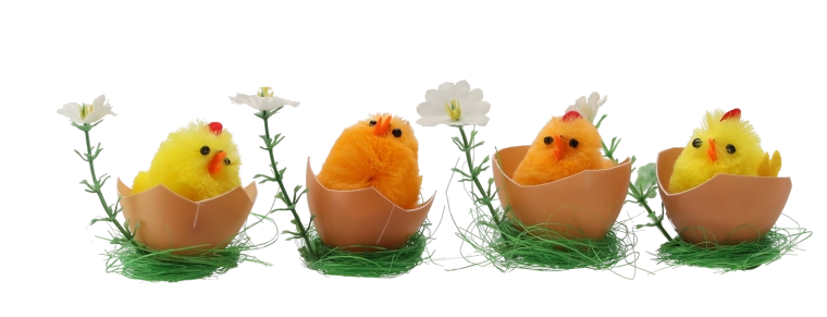 - Aspect ludique : adorables poussins dans une demi-coquille.
