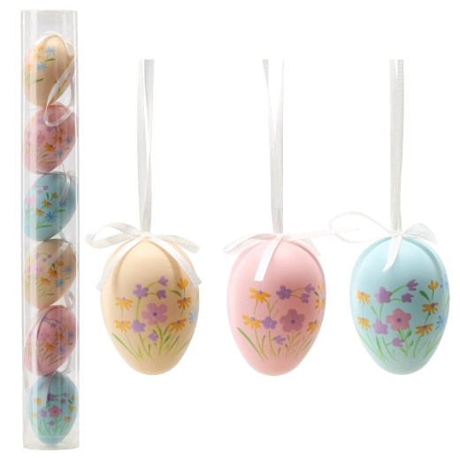 Lot de 6 œufs de Pâques avec motifs floraux 6 cm