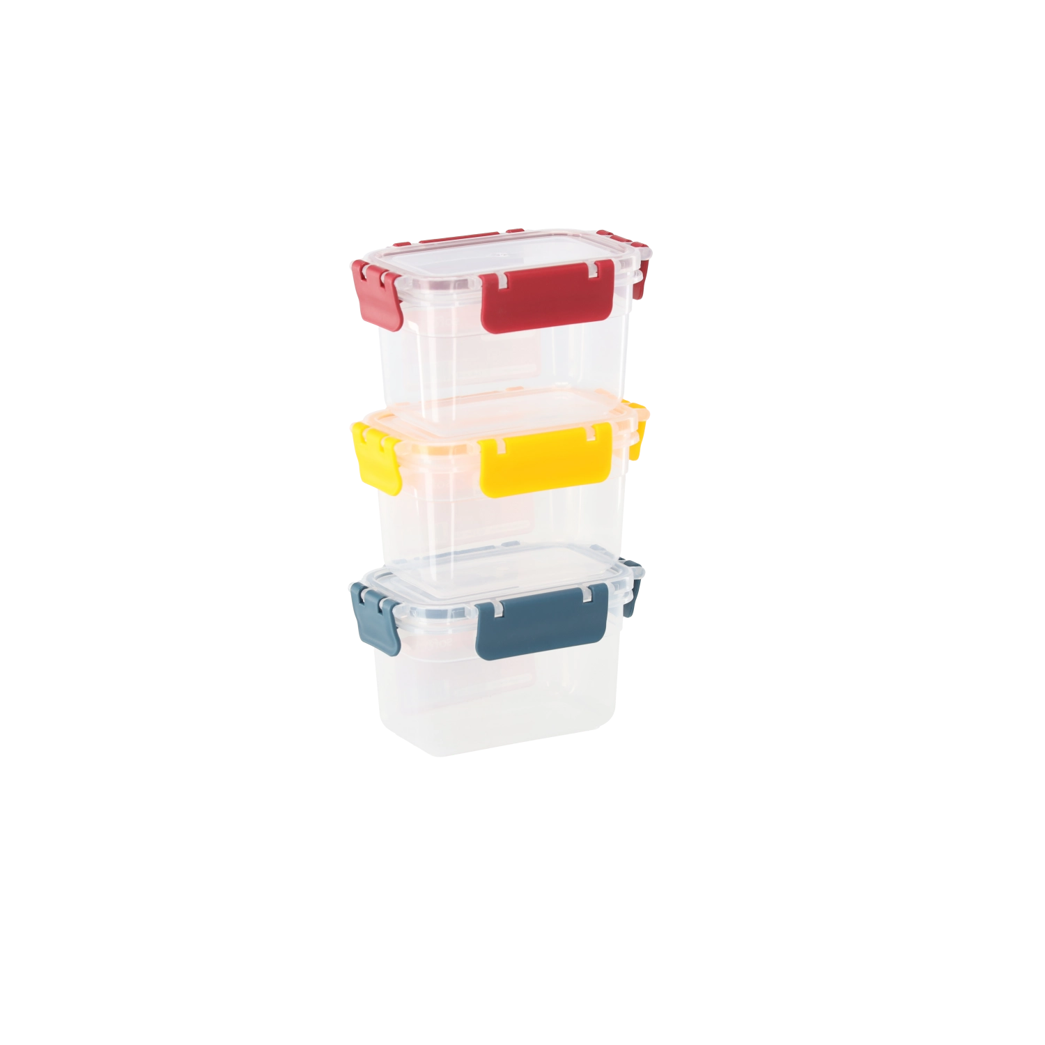 Grâce au plastique de qualité et au joint en silicone, la boîte est résistante, légère et réutilisable. Elle s’empile facilement, fait gagner de la place et est disponible en trois couleurs (jaune, bleu, rouge) pour identifier simplement le contenu.