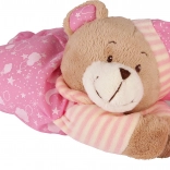 Ce mignon ourson est un compagnon idéal, de jour comme de nuit. En pyjama rose, c’est un ami qui ne vous quittera jamais, et c’est un cadeau idéal pour les tout-petits. L’ourson stimule l’imagination des enfants et peut être suspendu, vous pouvez donc facilement l’attacher au lit d’enfant ou à la poussette. Il joue une berceuse apaisante « Bonsoir, bonne nuit », qui aidera votre enfant à s’endormir facilement.