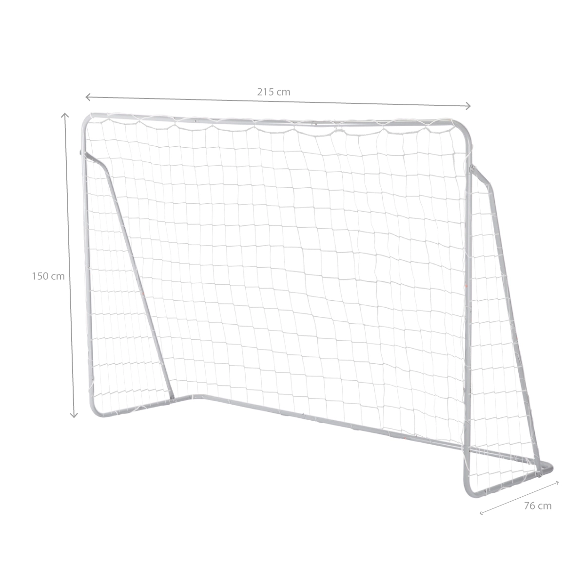 Des ancres pour la fixation au sol sont incluses. Le revêtement peint protège la structure de la pluie et de la neige, ce qui rend le but prêt pour une utilisation toute l’année.