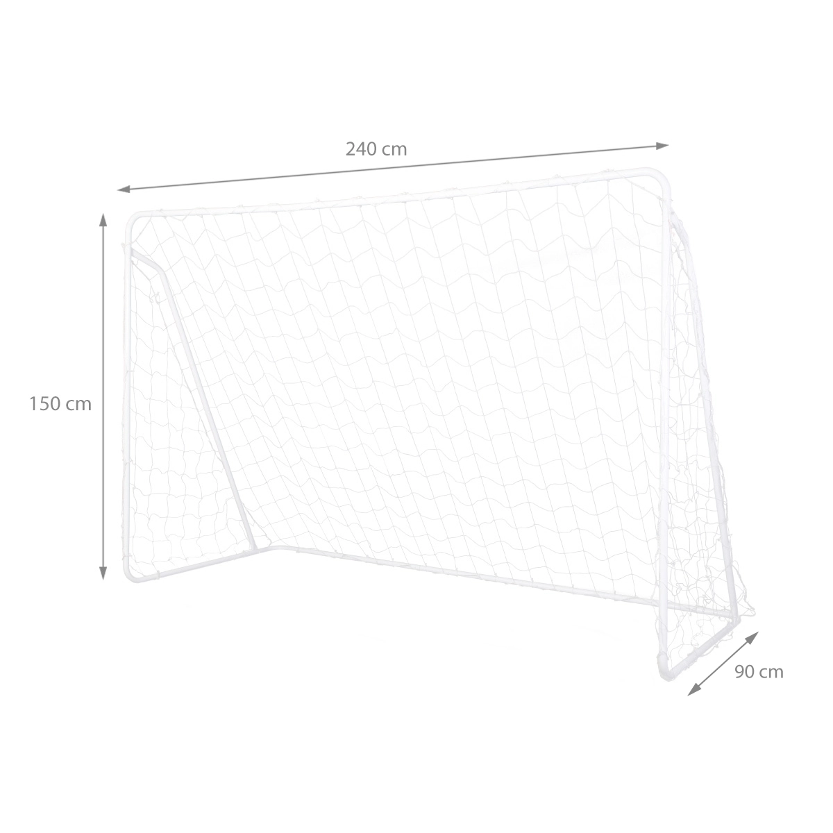 Cadre en tubes d’acier (Ø 25 mm) et filet PE à mailles 12 × 12 cm conçus pour un usage intensif, capturant fiablement les ballons.