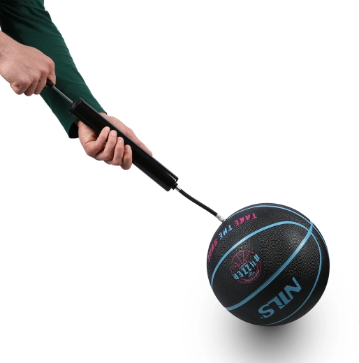 La pompe NILS pratique est une aide fiable pour toute équipe sportive et toute famille. Sa construction légère et sa poignée ergonomique permettent un gonflage manuel confortable des ballons de basket, de football ou de volley, ainsi que des ballons de plage, matelas et autres accessoires gonflables. Le tuyau flexible avec aiguille protège la valve et facilite un dosage précis de la pression.