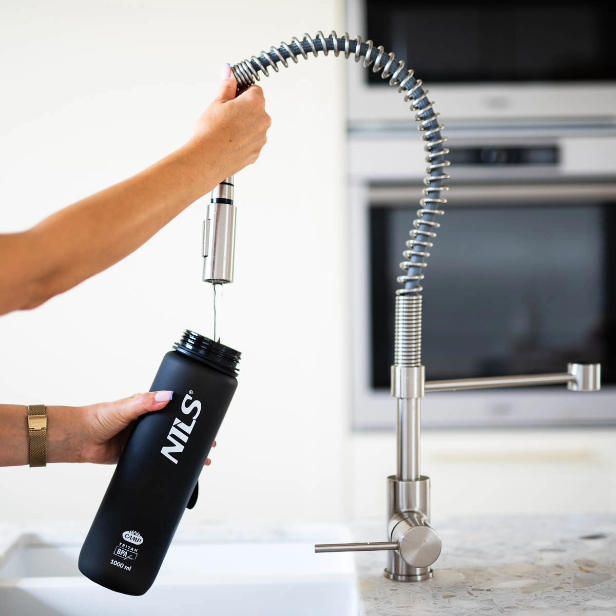 Le large goulot et l’échelle de volume permettent un remplissage rapide et un dosage précis des boissons. Idéal pour l’évier de cuisine et pour gérer votre hydratation tout au long de la journée.