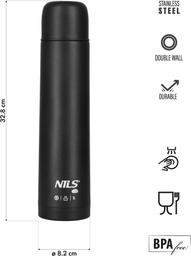 La thermos NILS CAMP de 1 L est un compagnon fiable en ville comme en montagne. Son corps robuste en acier inoxydable avec isolation sous vide double garde votre café ou thé bien chaud, et l’eau agréablement fraîche. Grâce à sa finition mate, elle tient parfaitement en main et résiste aux conditions exigeantes des activités outdoor.