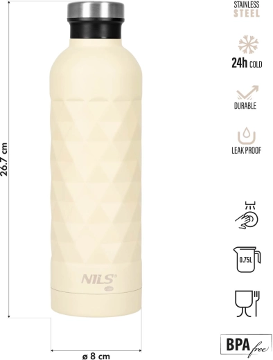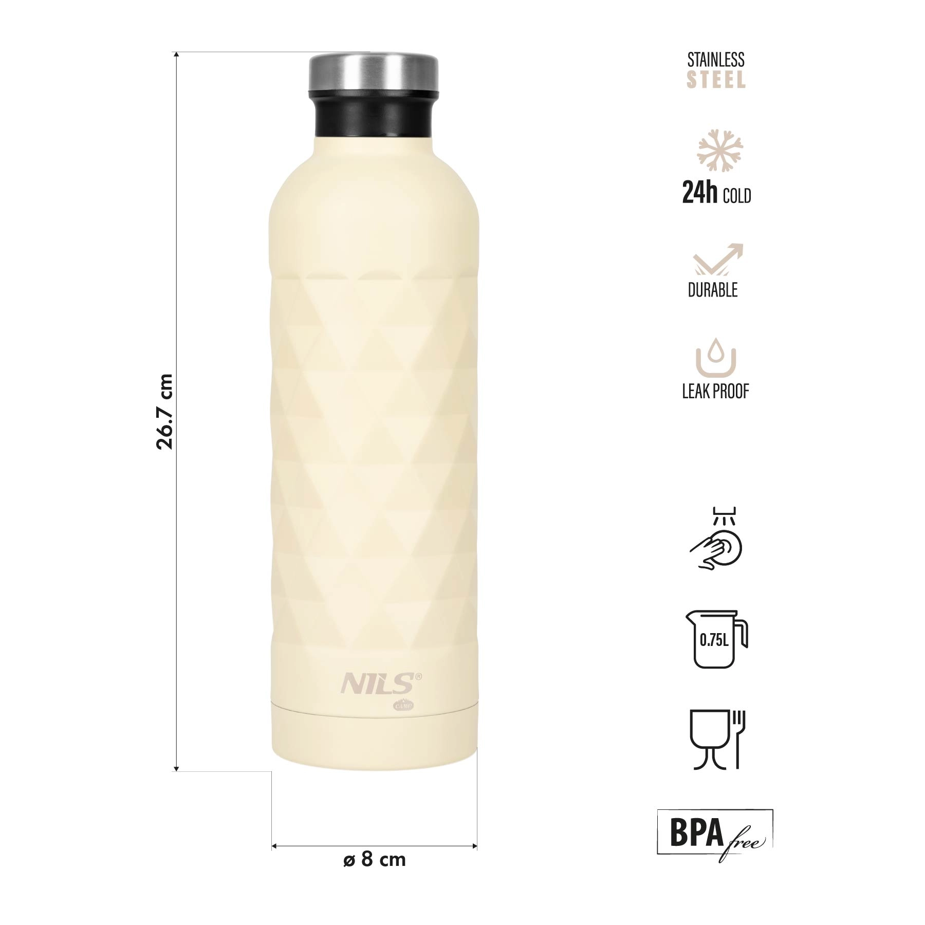 La bouteille isotherme NILS Camp de couleur beige est un compagnon fiable pour une journée active. Elle associe un design moderne, une construction robuste en acier inoxydable et des dimensions pratiques qui tiennent dans un sac à dos ou un porte-bouteille. Sa surface texturée assure une prise en main sûre et, grâce à l’isolation, la bouteille ne condense pas – elle reste sèche au toucher.