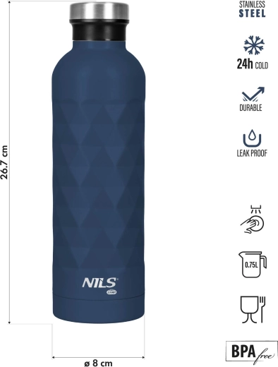 La bouteille isotherme NILS Camp est conçue pour l’hydratation quotidienne à la maison, en ville comme en pleine nature. Grâce à sa double paroi, elle garde les boissons froides jusqu’à 24 heures tout en empêchant la formation d’humidité en surface, pour un toucher sec et agréable. Le bouchon à vis assure une étanchéité fiable et protège le contenu dans votre sac ou sac à dos.