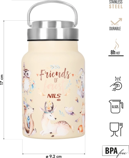 La bouteille isotherme NILS Camp Forest, élégante et résistante, d’une capacité de 520 ml, garde vos boissons froides jusqu’à 24 heures ou chaudes jusqu’à 8 heures. Grâce à sa double paroi isolante, à son acier inoxydable et à son bouchon vissé étanche, elle est idéale pour les excursions, le sport et l’usage quotidien. Les matériaux sont sans BPA pour une boisson sûre, sans arrière-goût.