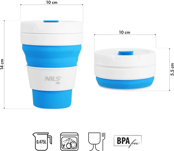 La tasse pliante en silicone NILS Camp est une solution astucieuse pour ceux qui veulent voyager léger sans compromis sur le confort. Une fois déployée, elle offre une capacité de 475 ml pour les boissons chaudes et froides ; après usage, elle se réduit en quelques instants à une hauteur compacte d’environ 5,5–6 cm – parfaite pour le sac à dos, le sac et même la poche.