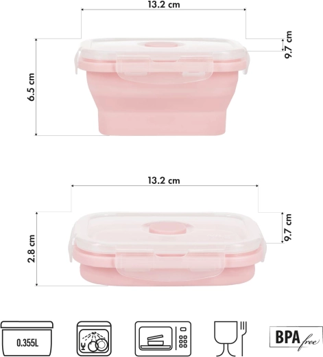 La boîte est fabriquée en silicone de qualité alimentaire (LFGB) et en polypropylène, ne contient pas de BPA et résiste à une utilisation quotidienne. Ses dimensions compactes et sa construction légère (seulement 93 g) en font un excellent compagnon pour le travail, l’école et les voyages.