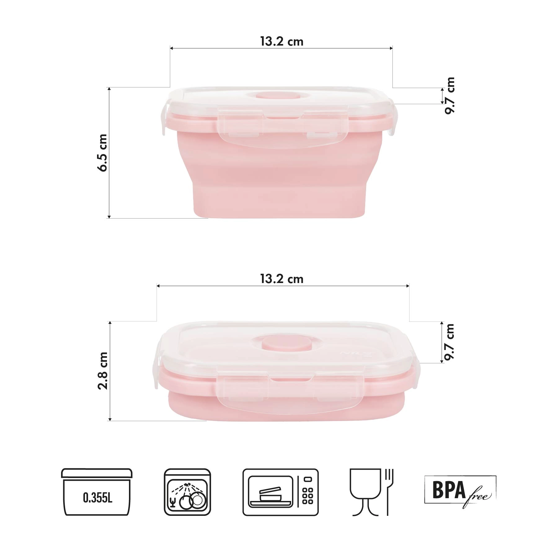 Après le repas, pliez simplement la boîte jusqu’à une hauteur de seulement 2,8 cm – parfait pour le sac à dos, le sac à main ou le tiroir. Moins de volume, plus de place.
