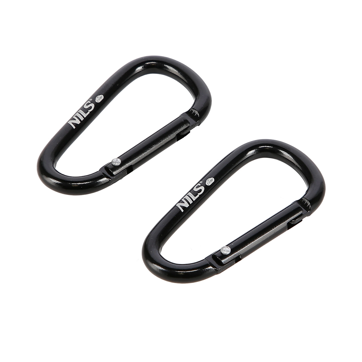 Pratique lot de 2 mousquetons en aluminium NILS Camp pour une utilisation quotidienne en pleine nature comme en ville. Finition anodisée résistante à la corrosion, verrou à ressort pour un accrochage rapide et chaque mousqueton supporte jusqu’à 3 kg – idéal pour les clés, les bouteilles, les accessoires de sac à dos ou l’organisation de l’équipement dans la tente.