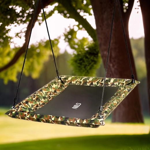 La plateforme de balancement avec cadre en acier et assise en tissu robuste Oxford 600D allie durabilité et confort. Des matériaux résistants aux UV et à la pluie garantissent une longue durée de vie et un entretien simple. Le design camouflage apporte du style à votre jardin et ravira les enfants par son côté ludique.