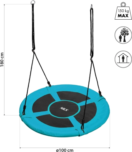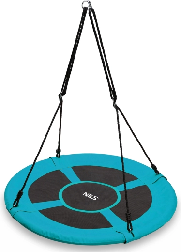 La balançoire nid de cigogne NILS Camp en turquoise est idéale pour le jardin, la terrasse, le balcon et même la chambre d’enfant. Grâce à sa large assise circulaire, plusieurs enfants peuvent s’y installer et le balancement devient encore plus amusant. La hauteur réglable via des cordes solides assure une utilisation confortable et sûre pour petits et grands.
