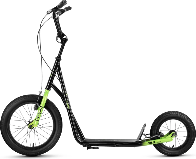 Vous cherchez un moyen de transport fiable pour les déplacements quotidiens comme pour les balades de loisir ? Cette trottinette NILS Extreme associe le confort des pneus gonflables à une construction solide et légère. La roue avant de 16" et la roue arrière de 12" absorbent parfaitement les irrégularités et offrent de l’assurance sur trottoir, pavés et voies stabilisées.