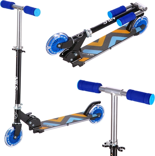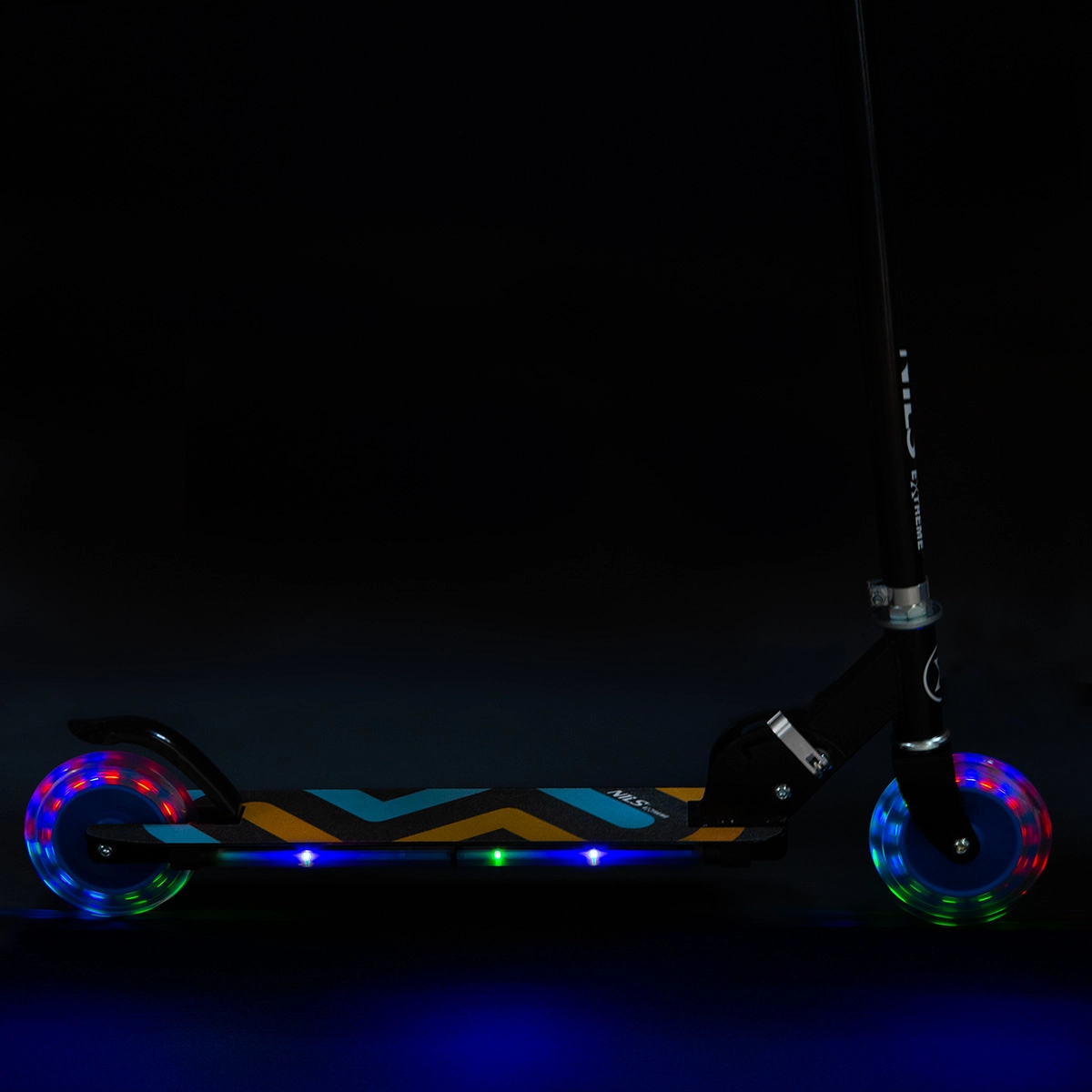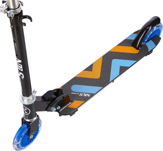 La trottinette NILS Extreme HD025 allie design moderne, légèreté et sécurité. La construction acier-aluminium est à la fois solide et légère, ce qui rend la trottinette facile à transporter et à ranger. Les roues LED et les flancs éclairés du marchepied améliorent la visibilité au crépuscule et ajoutent un effet attrayant que les enfants adorent.