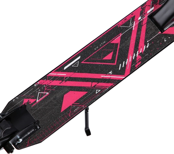 De grandes roues PU de 200 mm (82A) combinées à des roulements ABEC 7 de qualité offrent stabilité, silence et une conduite vive et sûre sur trottoirs et pistes cyclables. Le frein arrière à pied sur le garde-boue assure des arrêts maîtrisés, tandis que la béquille rabattable facilite le stationnement partout. La trottinette supporte une charge maximale de 100 kg et possède un plateau spacieux pour un appui confortable.