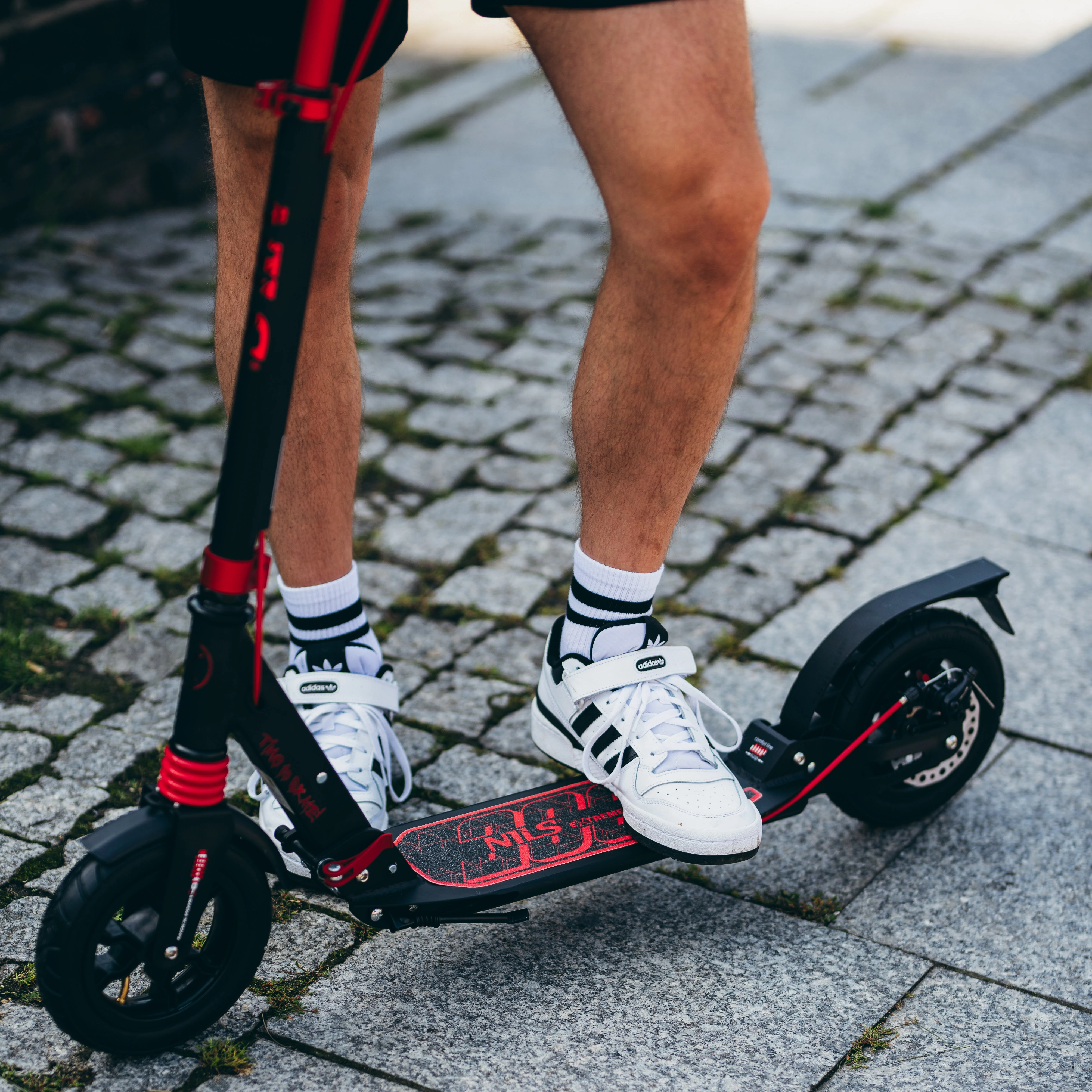 La trottinette NILS Extreme HM209T est un excellent choix pour les citadins recherchant confort, sécurité et compacité. Les pneus gonflables de 200 mm de diamètre associés à la suspension avant et arrière atténuent les aspérités et assurent une conduite fluide. Les roulements ABEC9 apportent légèreté et douceur de poussée, tandis que la large plateforme en aluminium 61 × 15 cm avec grip offre assurance et stabilité.