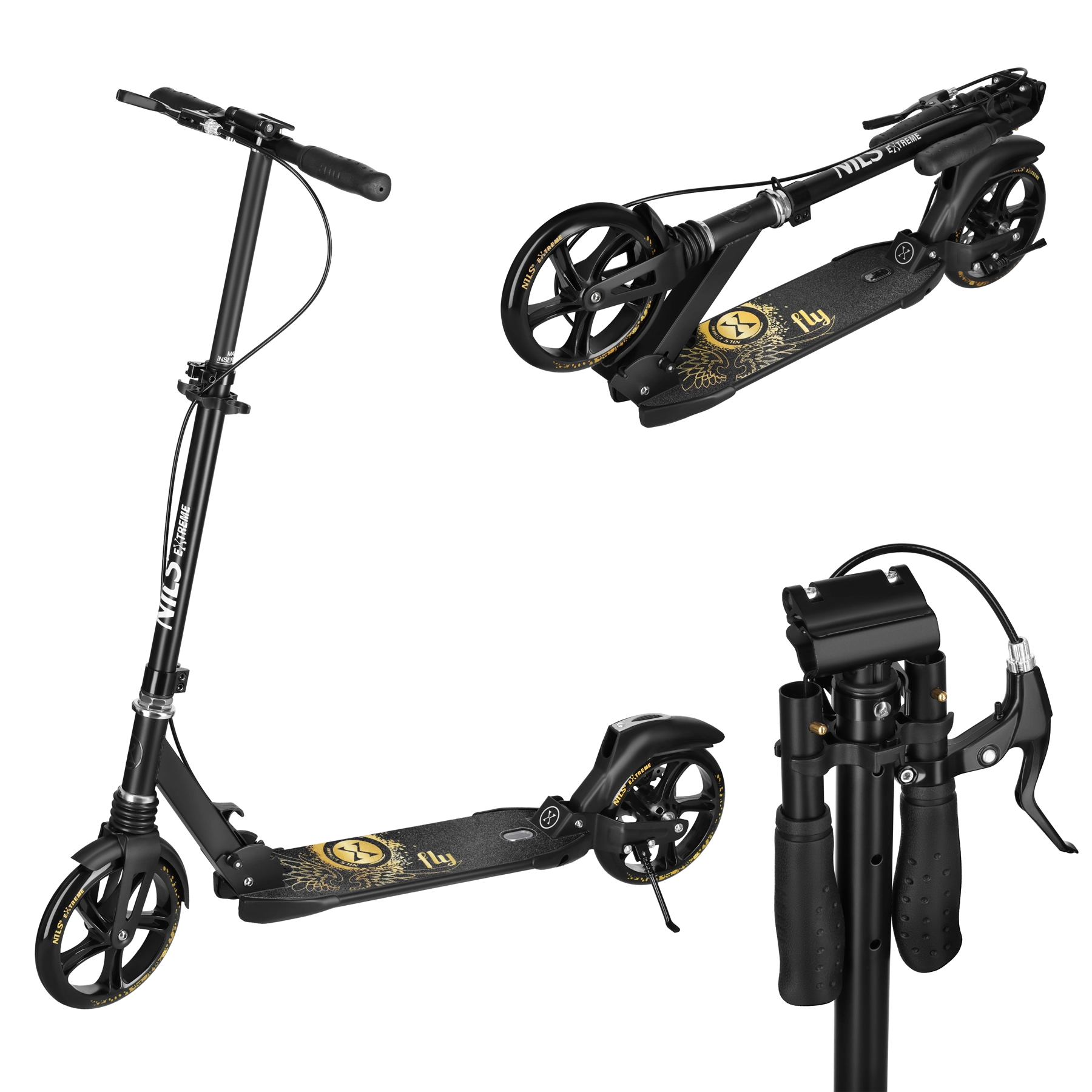 La trottinette NILS Extreme Fly est un excellent choix pour les trajets urbains comme pour la pratique récréative. De grandes roues PU de 200 mm et des roulements ABEC-11 précis garantissent une glisse fluide sur asphalte, pavés et trottoirs, tandis que la combinaison acier et aluminium offre robustesse sans poids superflu. Des accents dorés élégants et un graphisme moderne séduiront celles et ceux qui recherchent style et fonctionnalité.