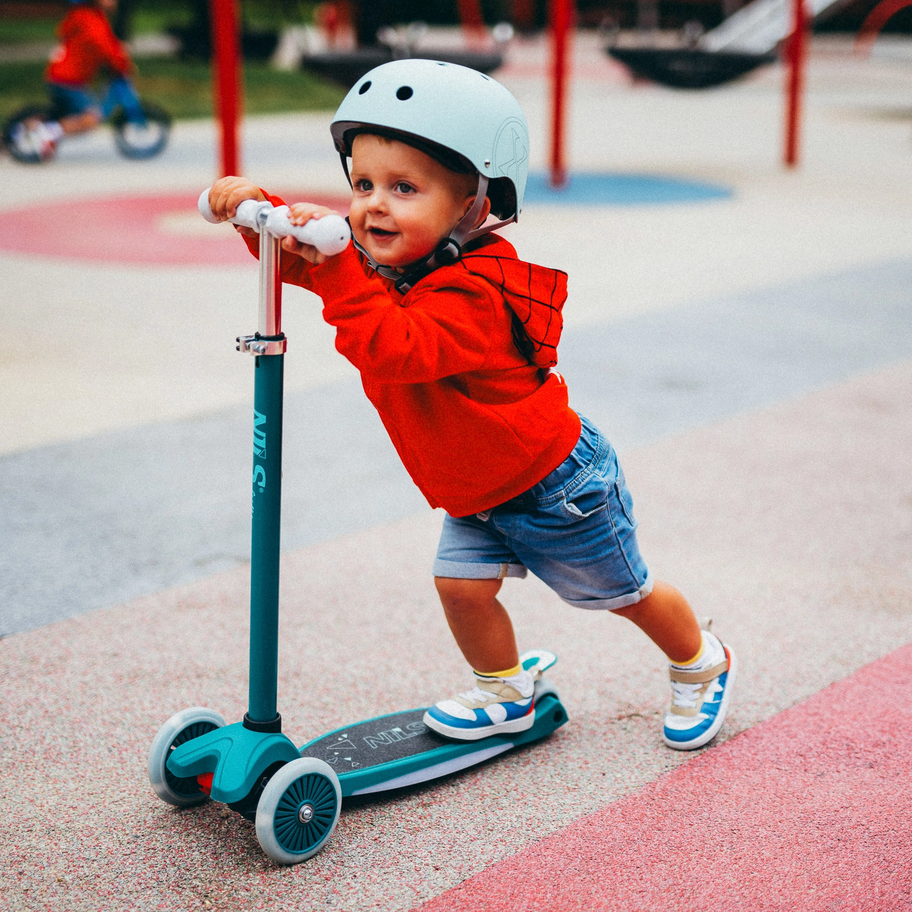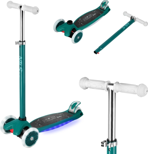 Grâce aux deux roues avant et au système intuitif de direction par inclinaison, cette trottinette est idéale pour les enfants débutants comme avancés. Le large plateau antidérapant avec effet LED augmente la visibilité et l’attrait, tandis que le guidon en T réglable (78/84/90 cm) permet à la trottinette d’évoluer avec l’enfant.