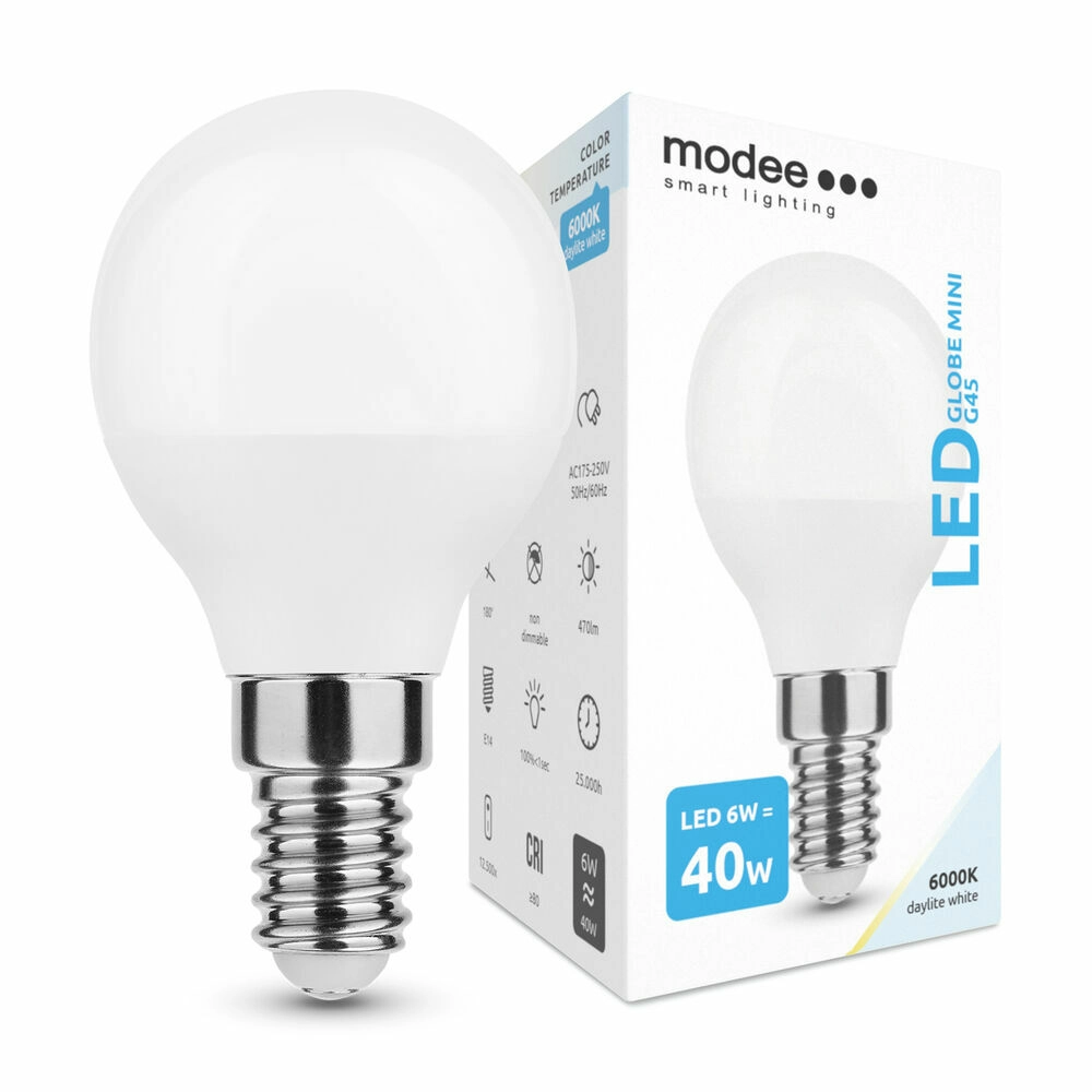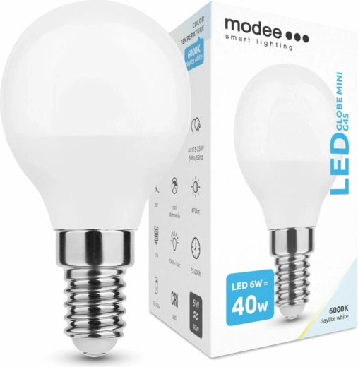La Modee LED Globe Mini G45 allie fonctionnement économique et éclairage de qualité. La teinte lumineuse blanc froid 6000K convient aux coins de travail, cuisines ou couloirs, où vous apprécierez la clarté et la concentration. Grâce à ses dimensions compactes G45, elle s’adapte aux petits luminaires et lampes décoratives.