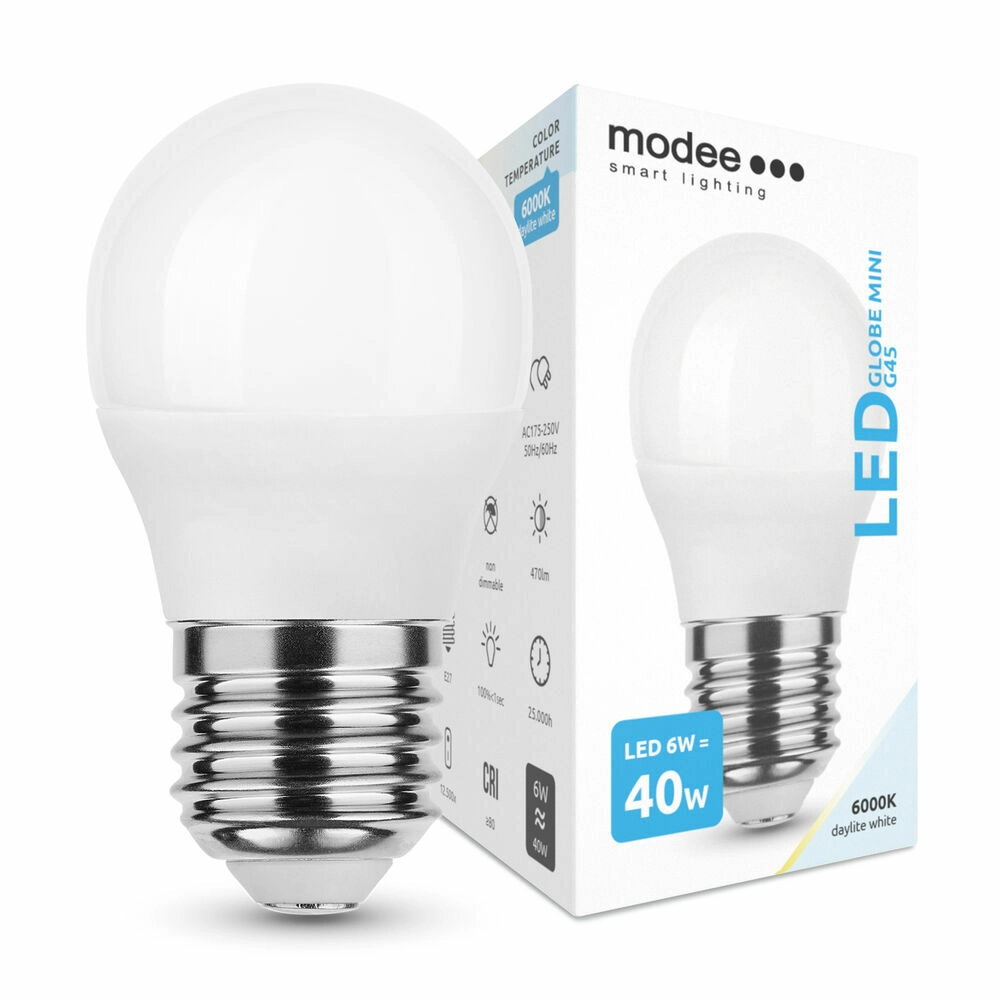 L’ampoule LED Globe Mini G45 associe fonctionnement économique et lumière puissante et homogène. Grâce à ses dimensions compactes, elle s’intègre dans les abat-jour et luminaires décoratifs plus petits tout en fournissant une lumière blanc froid lumineuse, adaptée au travail, aux cuisines, aux couloirs et aux locaux techniques.