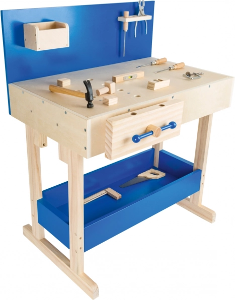 Découvrez la magie du travail manuel avec l'établi en bois, idéal pour encourager la créativité et la dextérité manuelle des enfants. Avec une construction robuste et la possibilité de réglage en hauteur du plan de travail, cet établi est conçu pour convenir aussi bien aux droitiers qu'aux gauchers. Sa couleur bleue et ses solutions de rangement pratiques offrent non seulement un plaisir esthétique mais aussi une fonctionnalité maximale.