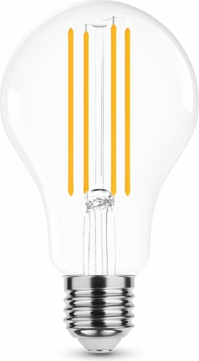 Cette ampoule LED à filament au format A70 combine look classique et efficacité moderne. Le « filament » transparent répartit les puces LED uniformément, garantissant un éclairage à 360° sans ombres et une apparence attrayante dans les luminaires ouverts ou suspendus dirigés vers le bas.