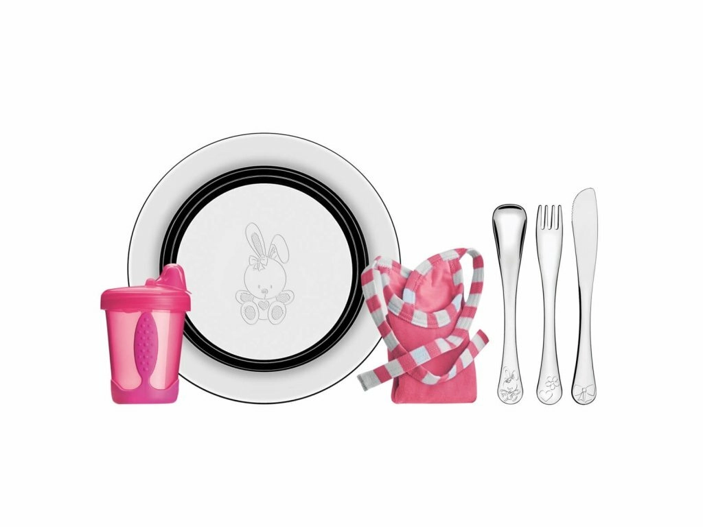 Adorable et pratique, le set de repas pour enfants Tramontina Le Petit en rose offre tout ce dont un petit gourmand a besoin. Il comprend un couvert en acier inoxydable (fourchette, cuillère et couteau), une assiette en acier inoxydable, un bavoir doux et un gobelet plastique 200 ml à fermeture en polypropylène sans BPA. Les manches joyeusement décorées encouragent l’autonomie à table et facilitent l’entretien.