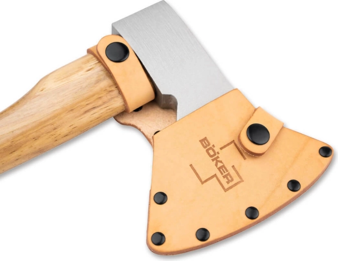 Élégant et fonctionnel, l’étui en cuir bovin naturel et épais est spécialement conçu pour les haches BÖKER Plus Appalachian Axe. Il couvre entièrement l’arête de coupe et, grâce à sa construction rivetée et à ses boutons-pression métalliques, offre une longue durée de vie même dans des conditions exigeantes.