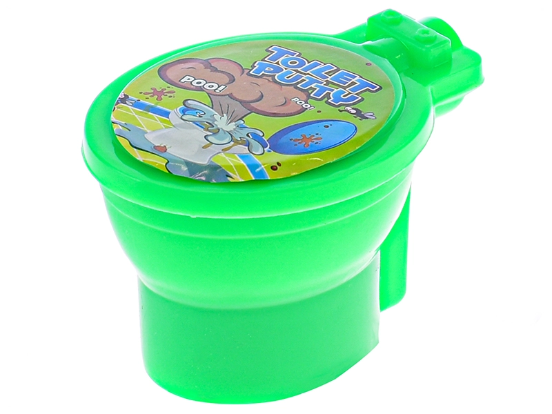 - Design ludique : toilette originale servant de gobelet pour le slime.