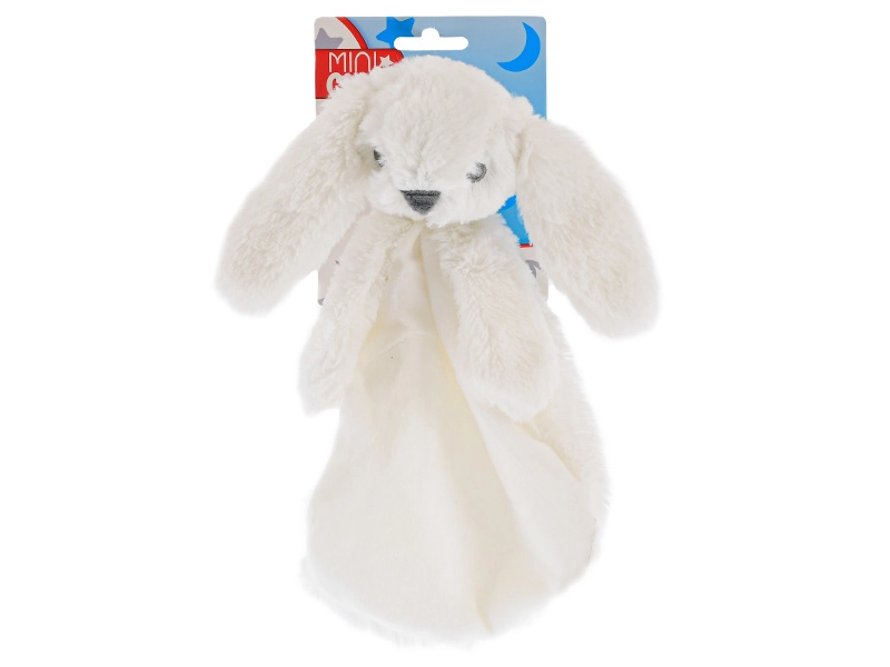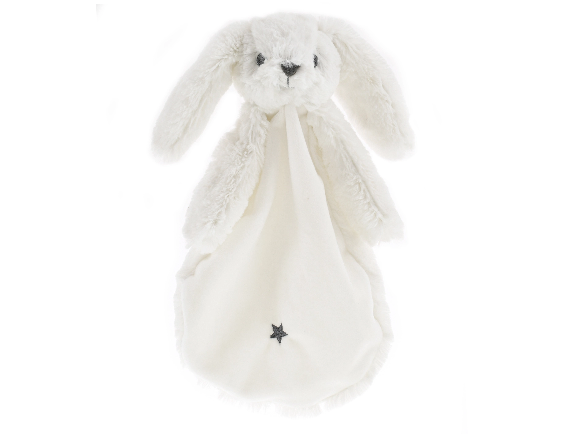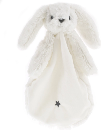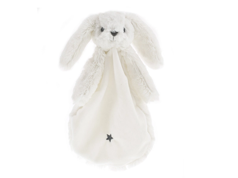 Le doudou lapin blanc associe une tête en peluche toute douce à une légère couverture textile, facile à tenir même pour les plus petites mains. Sa surface moelleuse apaise, renforce le sentiment de sécurité et favorise un endormissement paisible.