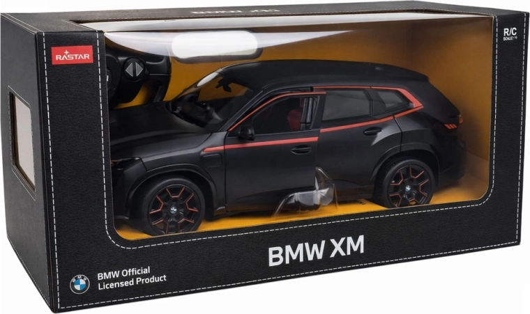 Modèle sous licence BMW XM à l’échelle 1:14 de la marque RASTAR, offrant un design réaliste, un mouvement dans toutes les directions et un pilotage 2,4 GHz fiable. Finition sportive noire avec accents rouges, phares avant et arrière fonctionnels, portes ouvrantes et pneus en caoutchouc pour un plaisir garanti pour enfants et adultes.