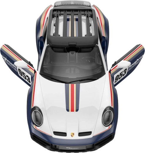 Extérieur détaillé avec graphismes rallye, proportions fidèles et clin d’œil à l’iconique Porsche 953 pour séduire collectionneurs et enfants.