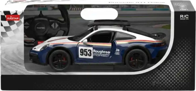 Voiture R/C sous licence PORSCHE 911 Dakar de la marque RASTAR à l’échelle 1:14, offrant une finition réaliste, un contrôle fluide 2,4 GHz et d’excellentes performances de conduite. Portes ouvrantes, feux LED, amortissement sur les quatre roues, pneus en caoutchouc à haute adhérence et différentiel garantissent le plaisir même sur surfaces irrégulières. Porte-bagages de toit amovible et peinture détaillée faisant référence à la légendaire Porsche 953 raviront collectionneurs et enfants.
