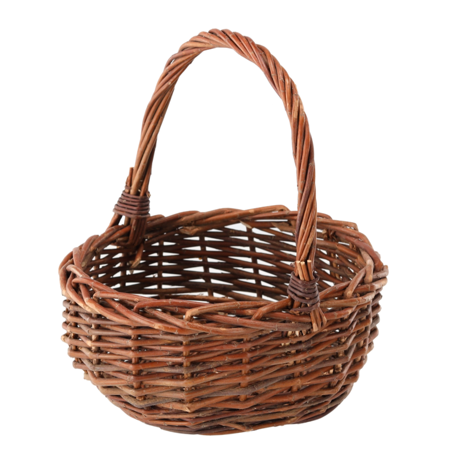 Panier en osier pratique et élégant, dans une teinte brun clair, idéal pour les courses, les pique-niques et la cueillette de champignons. Il offre un espace généreux, une poignée solide pour un transport confortable et une structure légère mais résistante en osier naturel, garantissant une longue durée de vie et un style traditionnel.