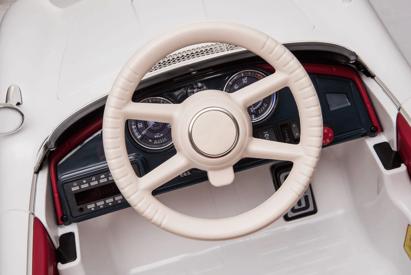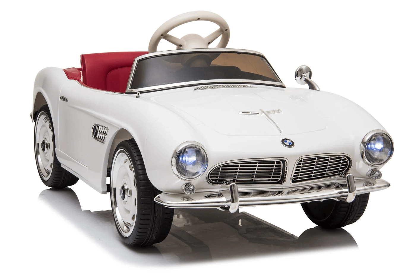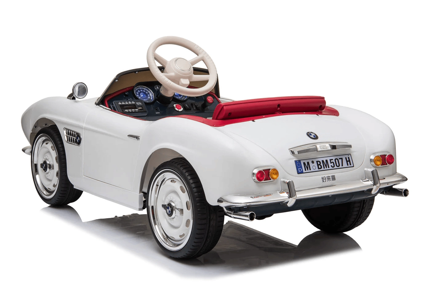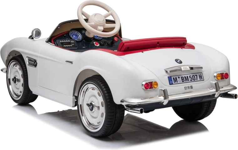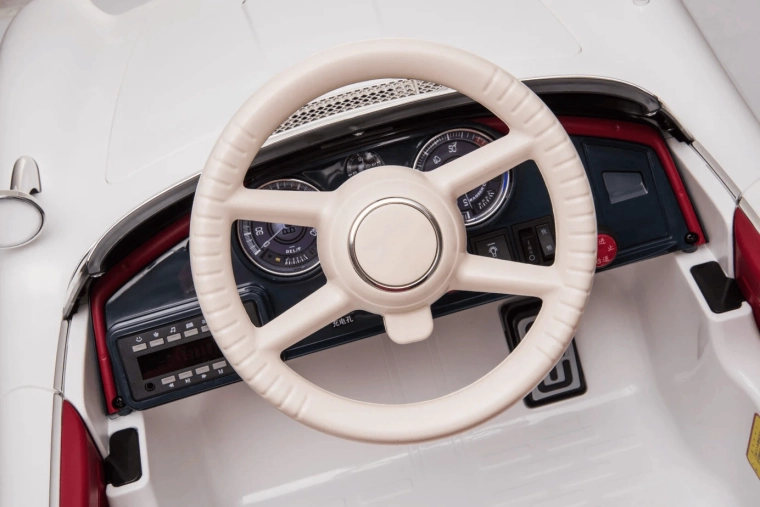 Voiture électrique pour enfants sous licence BMW dans une élégante couleur blanche. Elle offre un design réaliste, une télécommande parentale 2,4 GHz, un démarrage en douceur, des roues EVA pour une conduite silencieuse et un siège confortable en cuir. Grâce aux feux avant et arrière et au panneau multimédia avec MP3/USB/TF, les enfants profitent d’un trajet à la fois amusant et sûr.