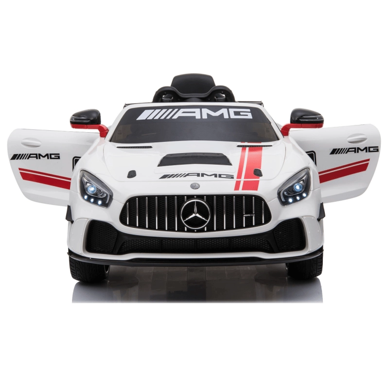 La voiture électrique pour enfants MERCEDES‑BENZ GT4 en blanc offre un design réaliste, une télécommande parentale 2,4 GHz, un démarrage en douceur et le choix entre deux vitesses. Grâce à ses portes ouvrantes, ses phares LED, son lecteur MP3/USB et ses roues EVA silencieuses, elle garantit une conduite sûre et amusante à la maison comme à l’extérieur.
