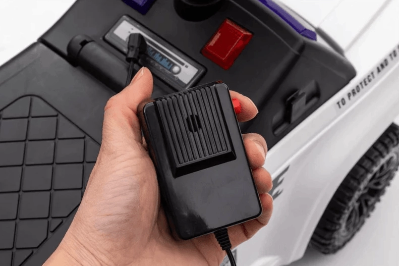 La voiture est équipée d’un moteur de 20 W et d’une batterie 6 V / 4 Ah, garantissant 1 à 2 heures de jeu après une charge complète (env. 8 à 10 heures). Un espace de rangement pratique accueille les petits objets pour la route et l’affichage de puissance informe sur l’état de l’énergie. Marche avant et arrière sont au rendez-vous, avec un pilotage simple et intuitif.