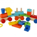 Ce jouet à tirer et ensemble de construction est un excellent moyen pour les enfants de développer leurs compétences et leur imagination. Le petit train en bois coloré se compose de trois châssis robustes et de nombreuses pièces qui peuvent être assemblées à votre guise.