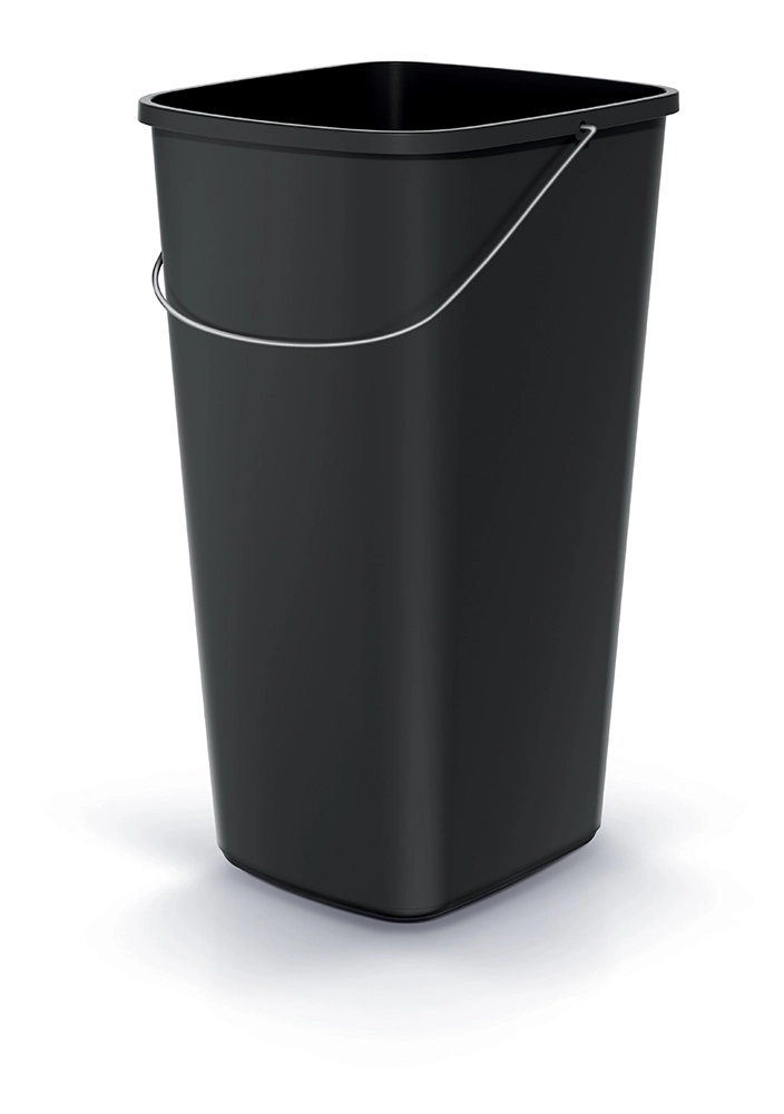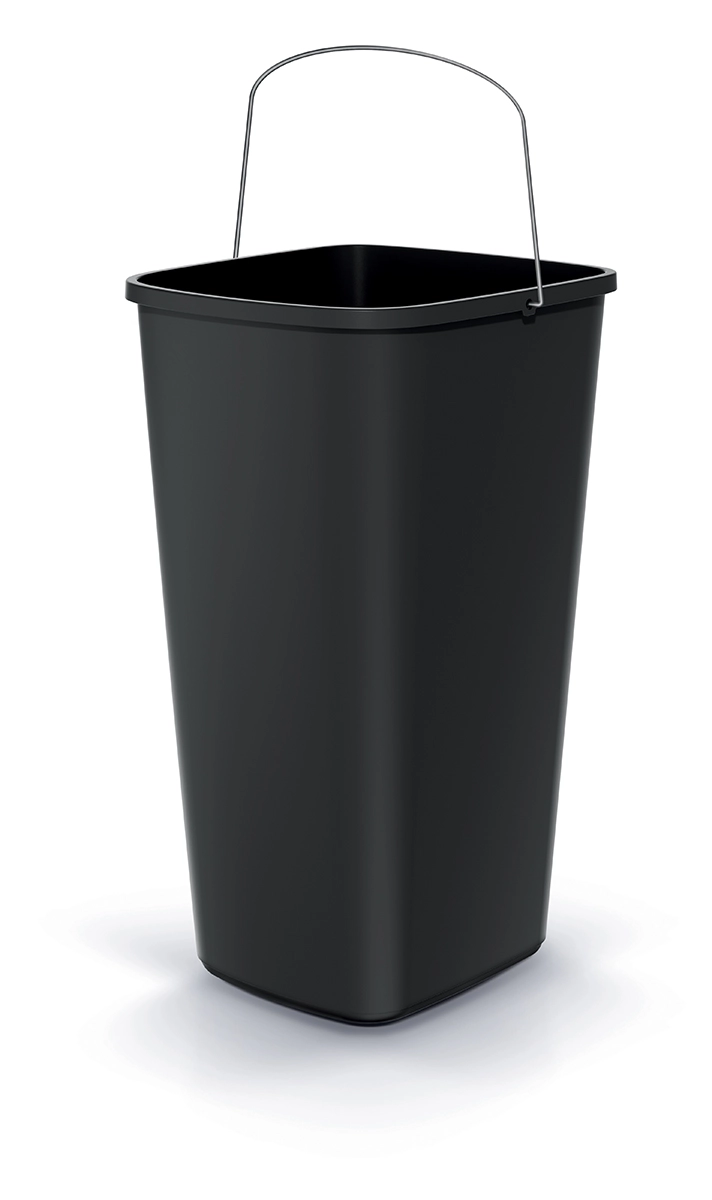 Poubelle pratique de 25 L en plastique 100 % recyclé, dans une élégante couleur noire. Elle offre une forme moderne et étroite pour gagner de la place, une surface lisse pour un nettoyage facile et une poignée métallique robuste pour un transport confortable. Grâce à son dessus ouvert sans couvercle, le dépôt des déchets est rapide et efficace à la maison, au bureau comme à l’atelier.