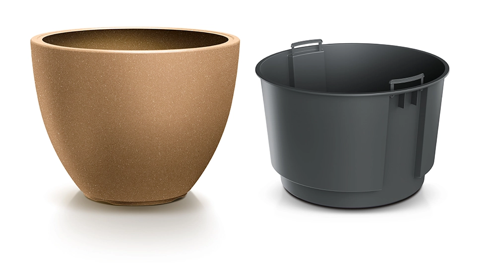 L’insert intérieur amovible avec poignées intégrées facilite la plantation, le rempotage et l’arrosage tout en réduisant la consommation de substrat.