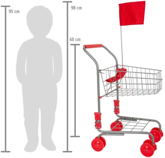 Le panier offre suffisamment de place pour des aliments, des jouets et des accessoires de magasin pour enfants. Le siège rabattable pratique pour poupée ou peluche rend le jeu encore plus réaliste. La combinaison de métal et de plastique robuste garantit une longue durée de vie pour un jeu quotidien.