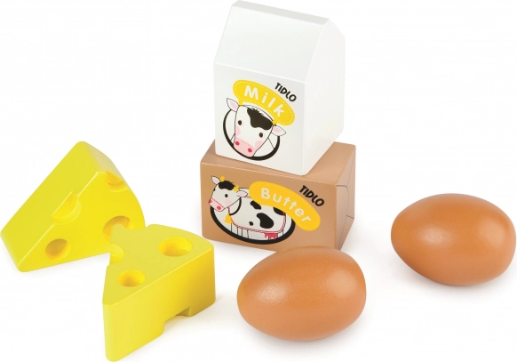 La caisse en bois pour enfants TIDLO propose des produits laitiers et des œufs de la ferme dans une boîte solide avec poignées. Parfaite pour jouer à la marchande ou au petit chef, elle développe la créativité et l’imagination. Contient 2 œufs, 2 tranches de fromage, du beurre et du lait. Fabriquée avec des matériaux de qualité issus de sources responsables, conforme aux normes de sécurité européennes.